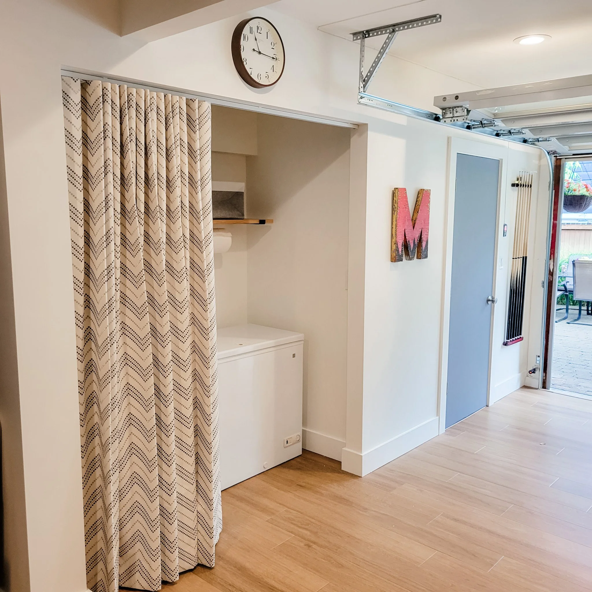 “For larger families, an extra freezer is a must. But while it’s great to have an additional area to keep all that frozen food, the sheer size of it can feel overwhelming. Gardner suggests concealing it behind a pretty drape. ‘The drape will add pattern and texture to the room when closed and provide easy access to the chest freezer when you need it.’”