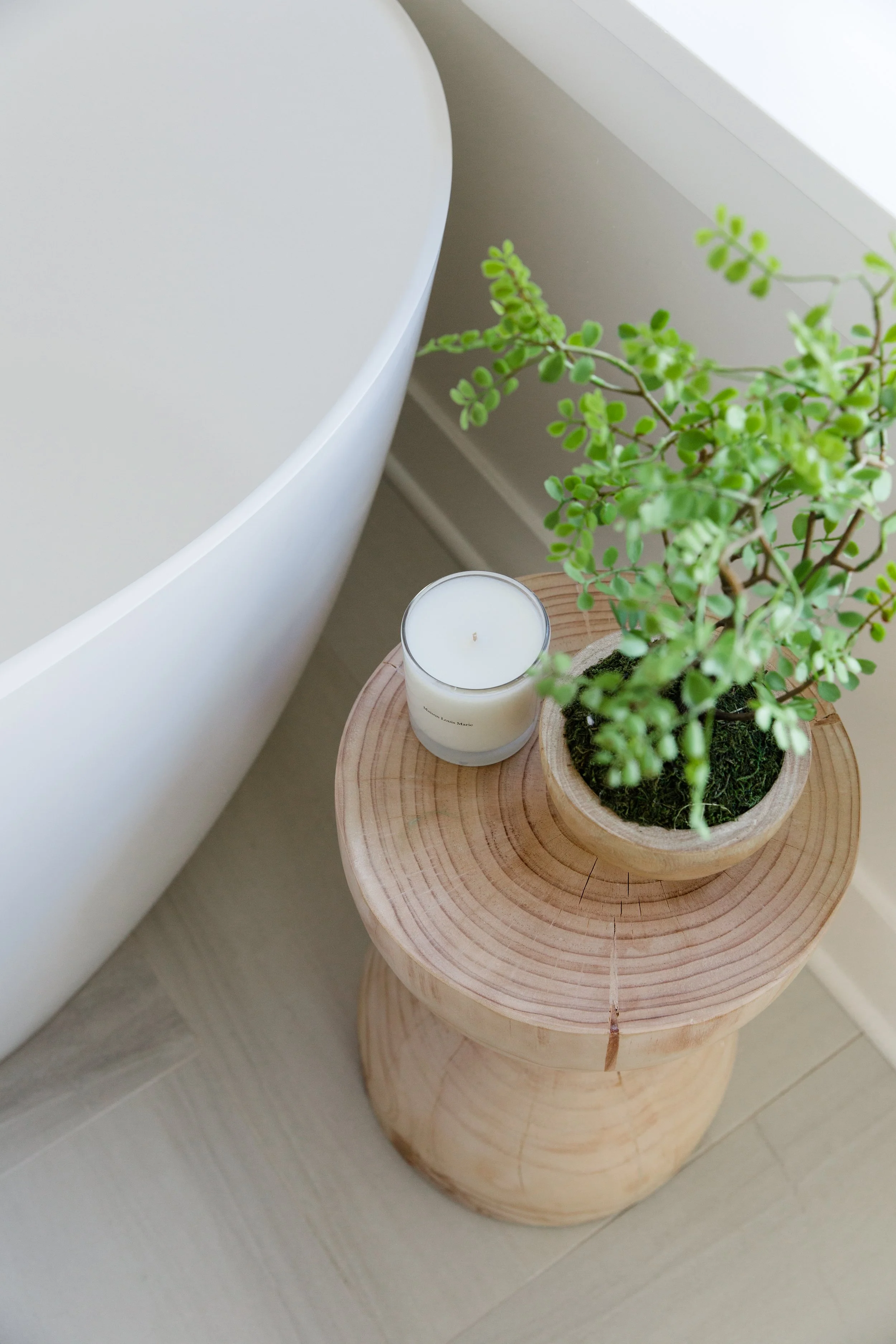 Spas are all about engaging the senses, so don’t forget about the power of scent and sound. Invest in an essential oil diffuser or scented candles to fill the room with calming aromas like lavender, eucalyptus, or sandalwood. A small waterproof Bluetooth speaker can play soft, soothing music or nature sounds to complete the sensory experience.