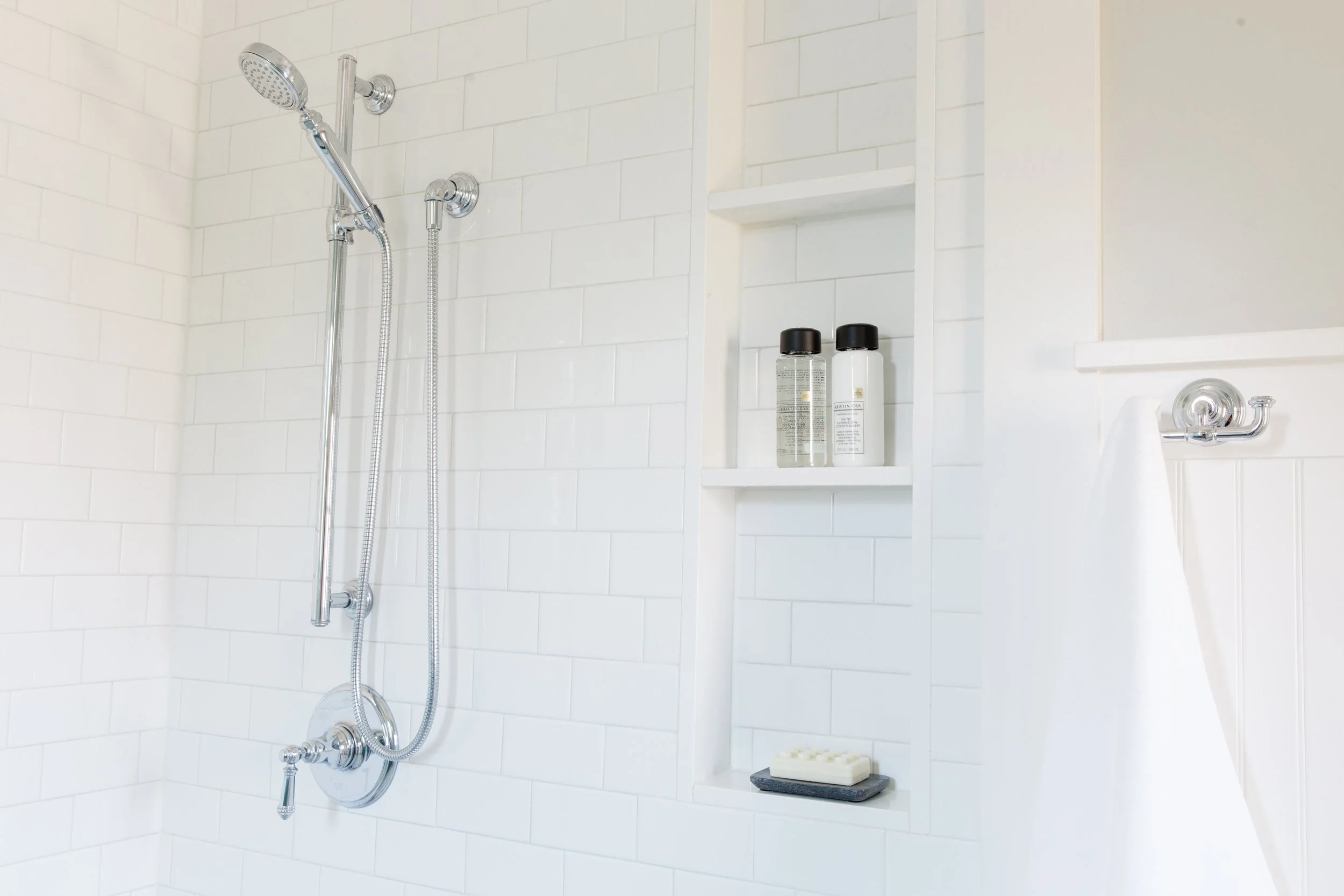 Let’s talk shampoo and conditioner. If multiple people use the bathroom regularly, you could quickly acquire an abundance of showering amenities. Ideally, you need a place for those to be tucked away and organized (preferably somewhere other than the tub ledge or the shower floor)!