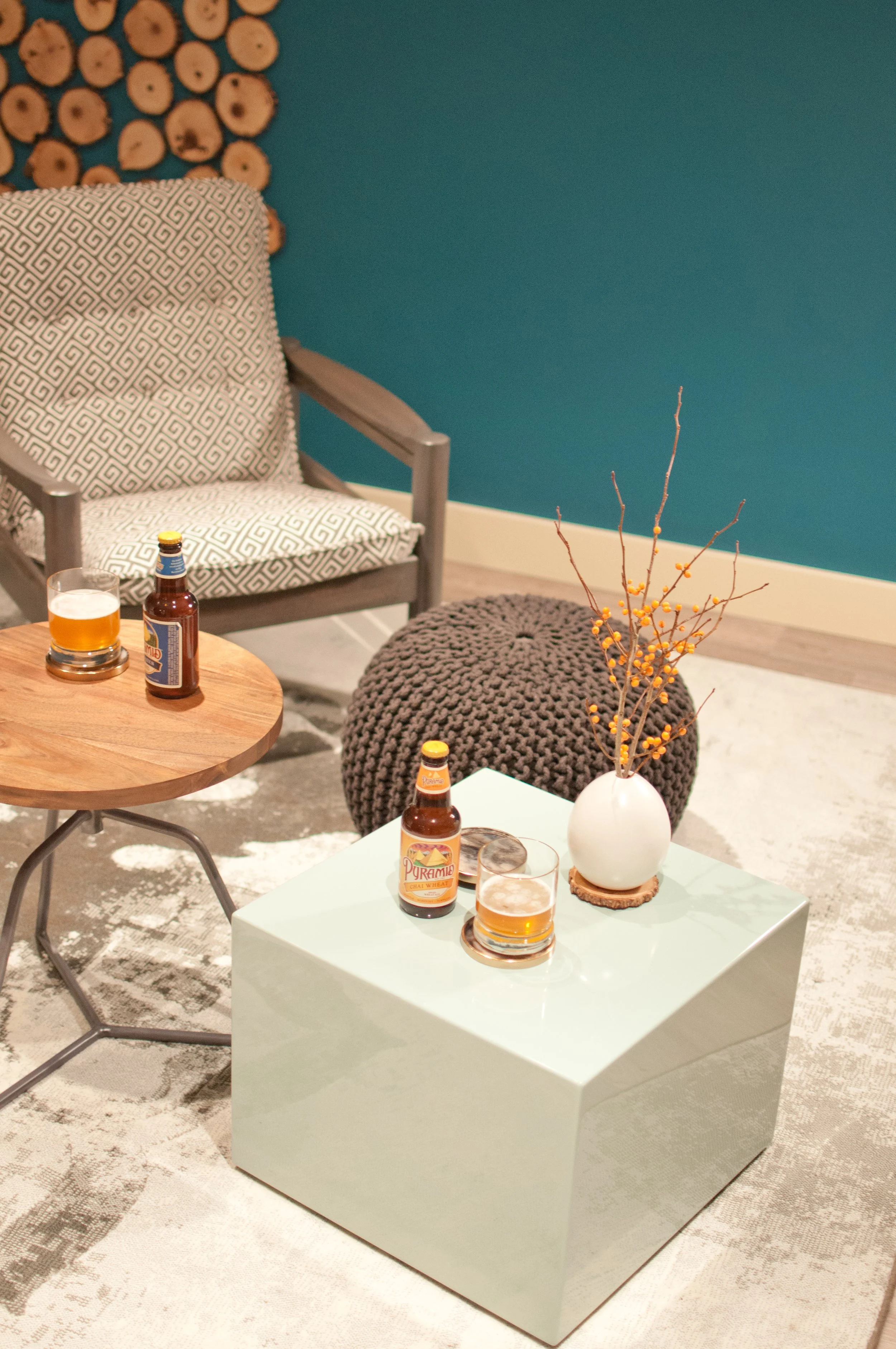 Keep your furniture flexible with a collection of tables and stools rather than a large coffee table. A flexible arrangement means that you can transform your room from a cozy space for you to an entertaining space for friends. Choose a piece or two with hidden storage to stow away blankets, magazines, and remote controls.