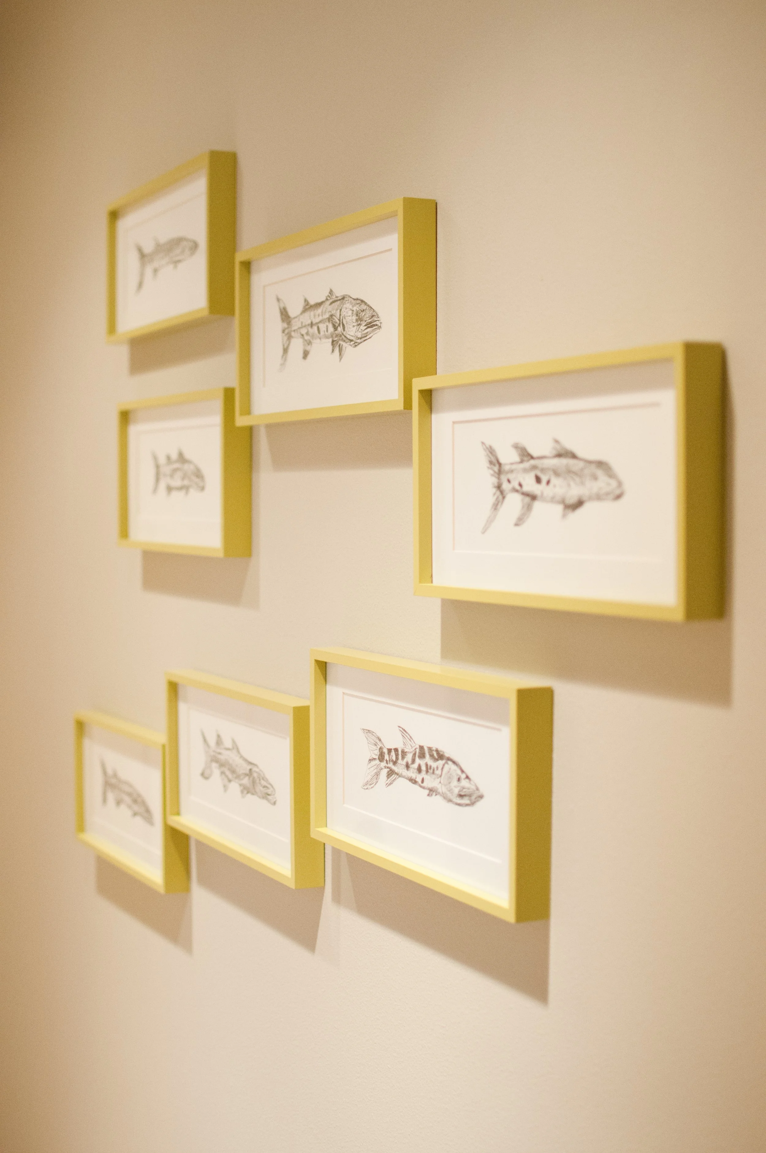 When our clients are on a budget, we often look to some of our favorite retailers for ready-made solutions. Room and Board, CB2, and Pottery Barn are just a few retailers we look to for ready-made wall frames. When choosing ready-made frames, we evaluate the size and color of both the frame and mat. When reviewing the size, you will want to look at the overall size and the artwork size intended for the frame. When planning to use ready-made frames, we often choose the frame in tandem with the print. This ensures that we choose a print size that works with the selected frame.