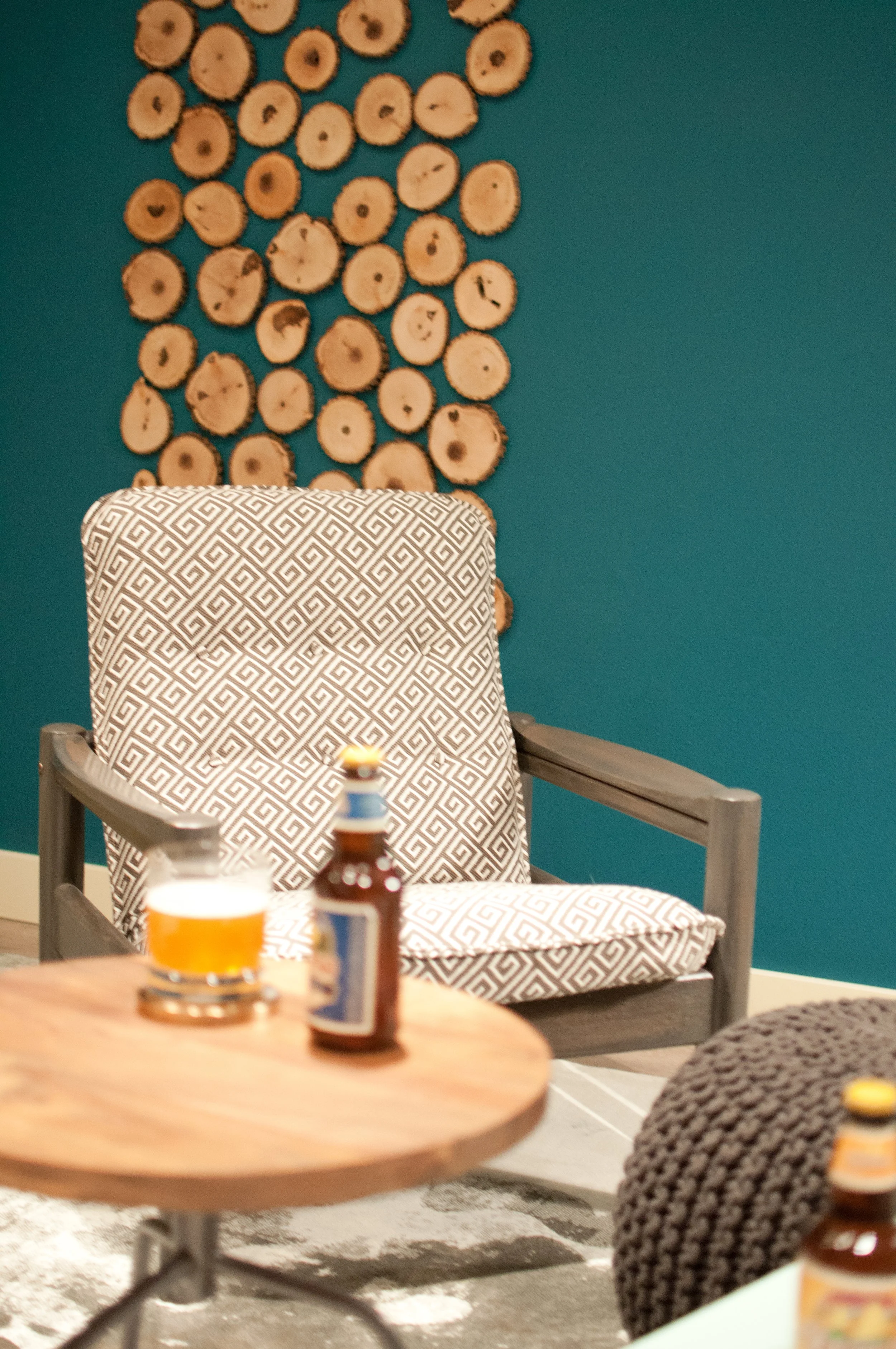 In our studio, we are big fans of creating art installations that combine a variety of pieces into a gallery-style art display. This can be a great way to use some pieces you already own, plus a few new pieces to create something special that makes you smile every time you pass it. In the installation below, we collaborated with our tween clients to add a burst of joy to their hang-out space.