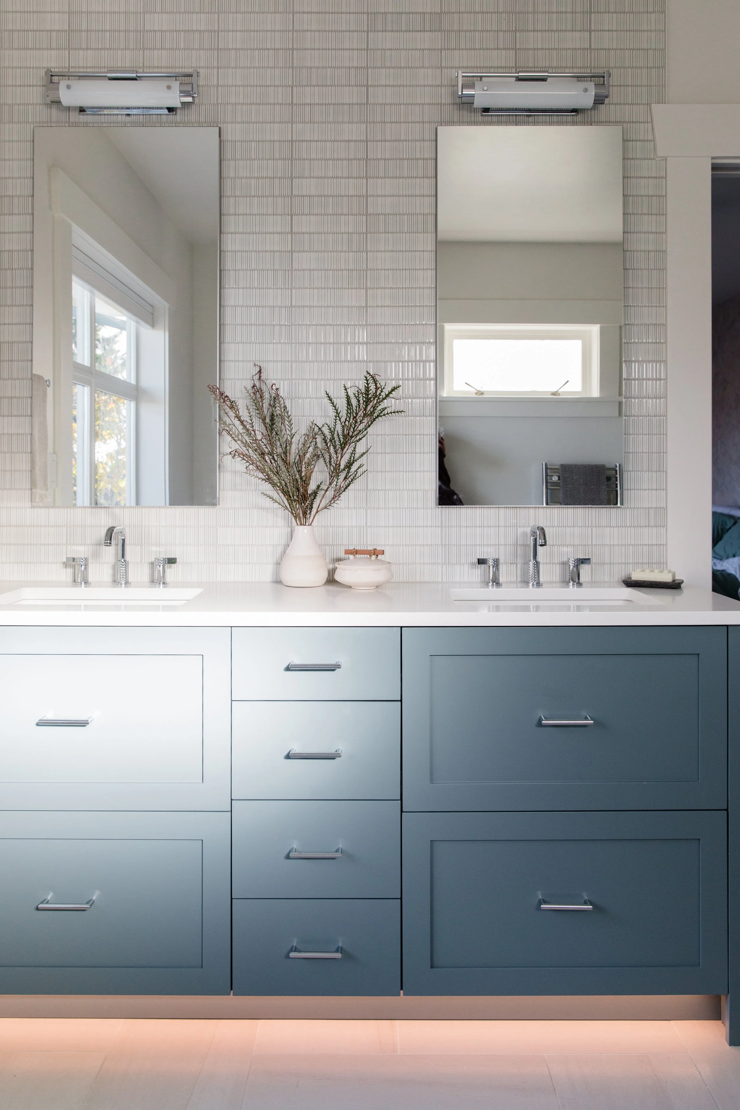 Pro: A double sink is an excellent solution if two or more people use the bathroom.